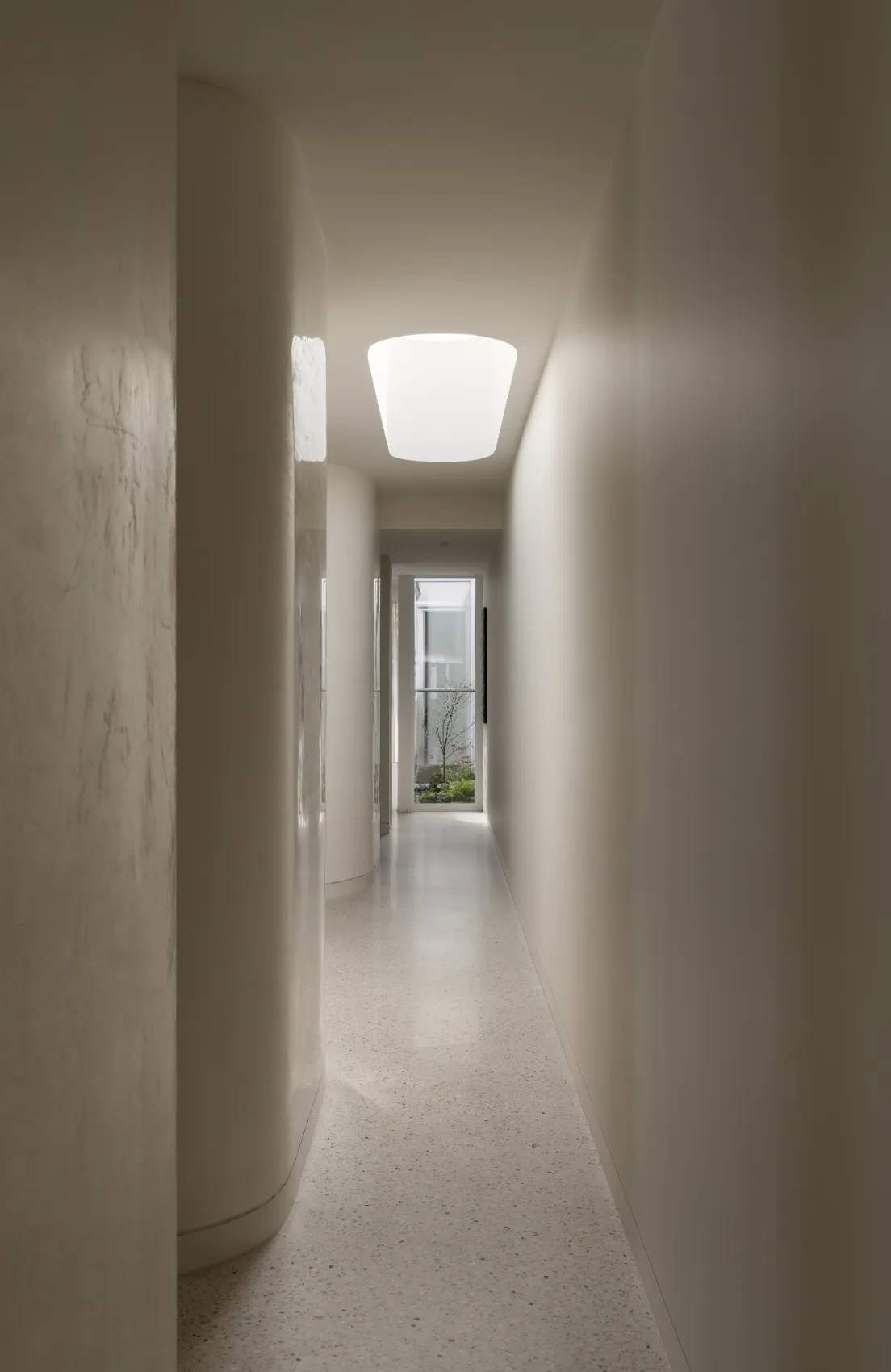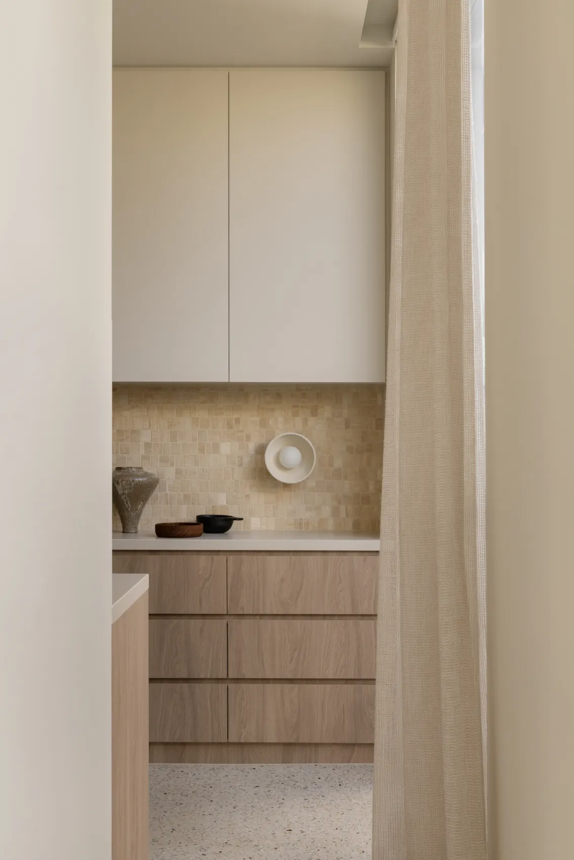 The design also cleverly balances openness with privacy. A large, open-plan kitchen forms the heart of the home, seamlessly connecting to a modern extension that opens to a tranquil courtyard. This space encourages both social interaction and solitude. Subtle elements, like the hidden pantry, ensure practicality without compromising on the home’s sense of calm.